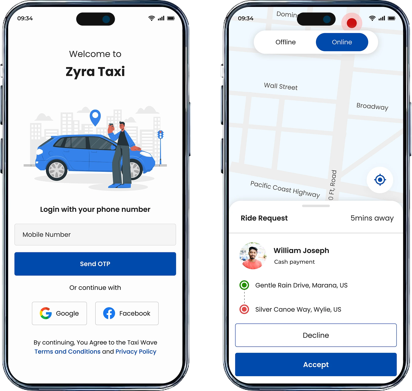 Its a ready-to-launch taxi booking platform with all essential features like live tracking, payment processing, and user management systems.