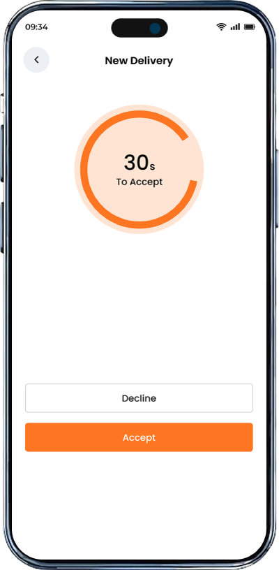 The system alerts nearby couriers about new delivery opportunities. Partners can evaluate requests based on location and availability, with access to complete order details and navigation support.
