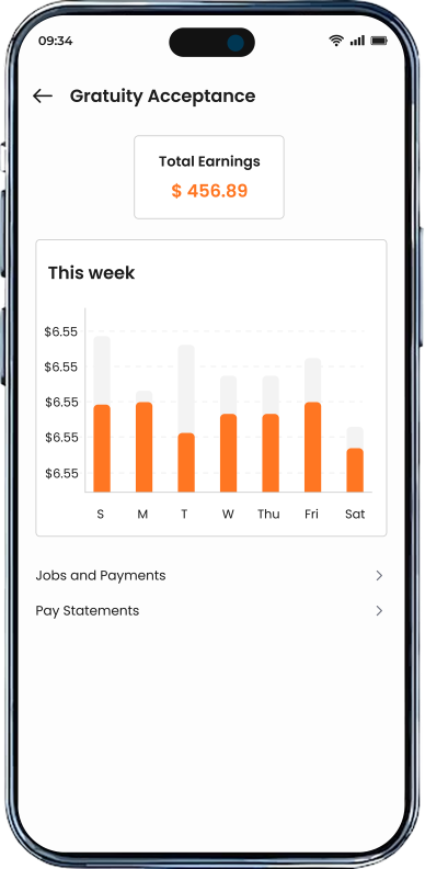 Real-time earnings monitoring with detailed breakdowns by order and timeframe.