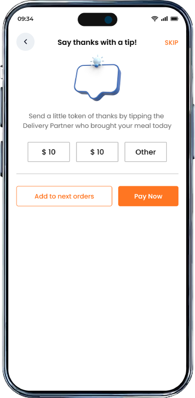 Delivery personnel may receive optional tips through a dedicated in-app function.