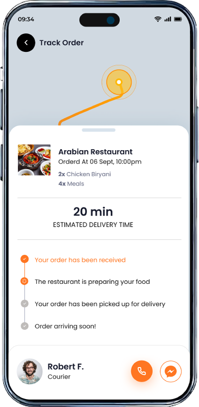 Customers can track meal preparation and delivery progress from restaurant to destination. Restaurant operators similarly monitor courier movements for order collection.